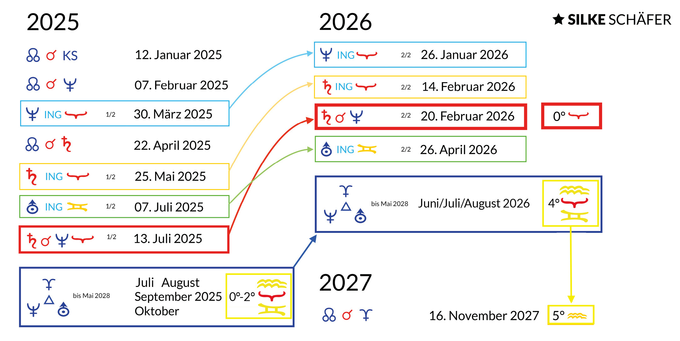 Ab April 2026 wechselt Uranus für sieben Jahre in das "männliche" Luft-Zeichen Zwilling und erreicht erneut den KBO Senda. Dies geschieht in Kombination mit Pluto im "männlichen" Luft-Zeichen Wassermann und dem SuperGalaktischen Zentrum im "männlichen" Luft-Zeichen Waage.